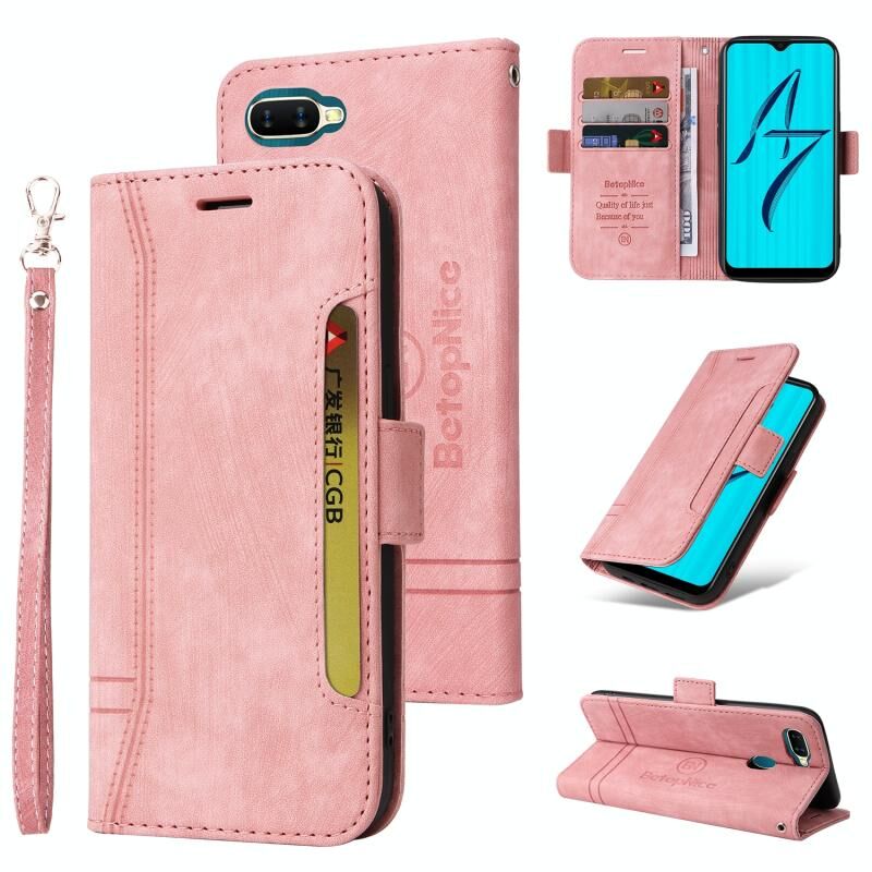 Για OPPO A7 / A5s BETOPNICE Διπλής όψης δερμάτινη θήκη τηλεφώνου με αγκράφα (ροζ) (BETOPNICE)