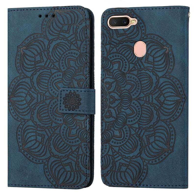 Για OPPO A7 / A5s Mandala ανάγλυφο Flip δέρμα τηλέφωνο υπόθεση (μπλε)