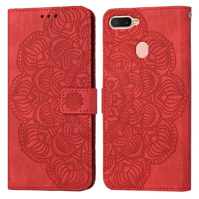 Για OPPO A7 / A5s Mandala ανάγλυφο Flip δέρμα τηλέφωνο υπόθεση (κόκκινο)