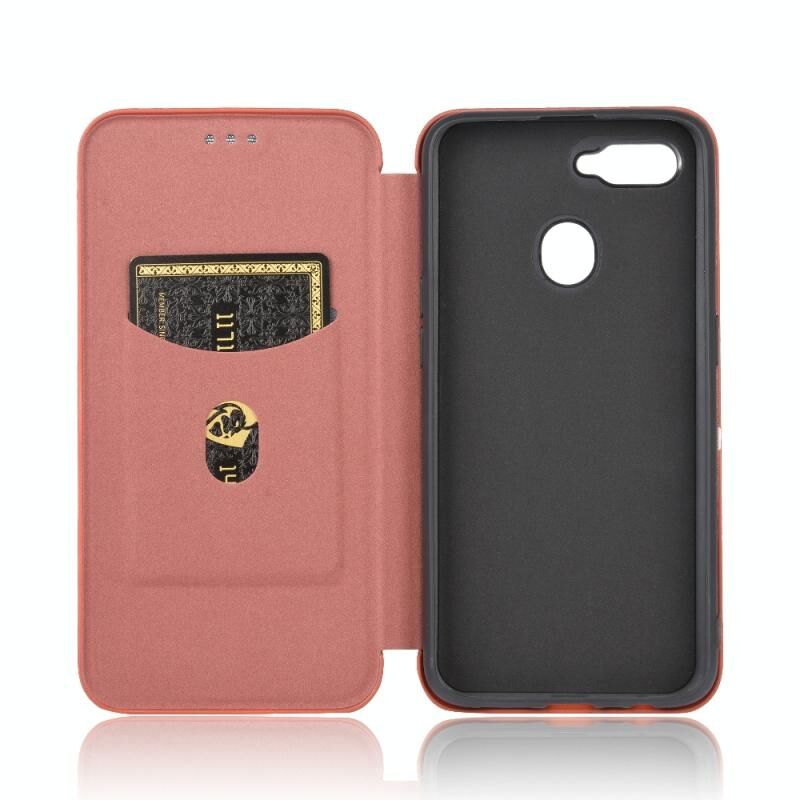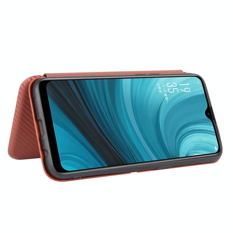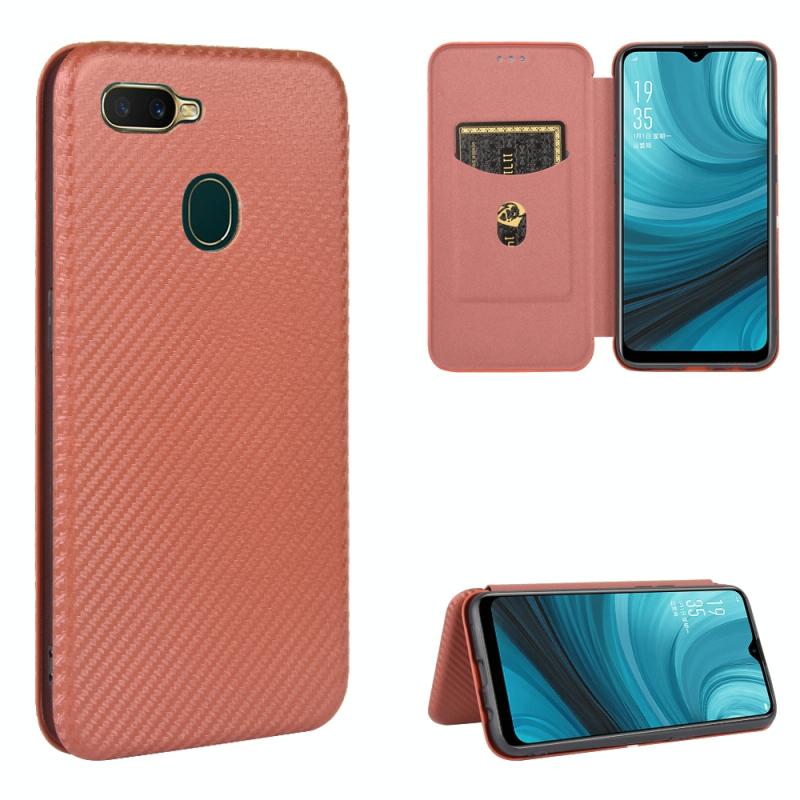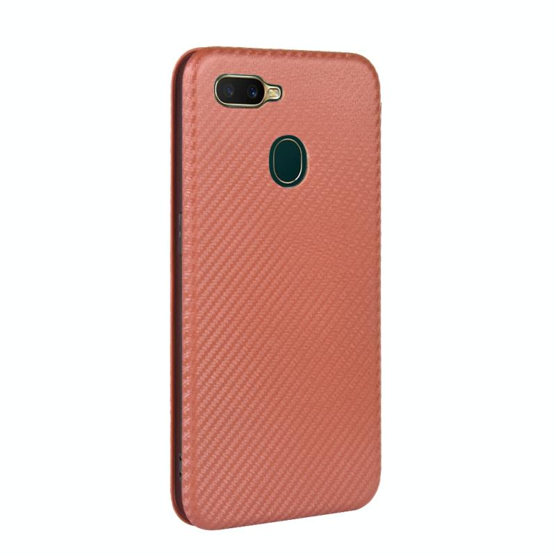 For OPPO A7(AX7) / A5s / AX5s / A12 Carbon Fiber Texture Horizontal Flip TPU + PC + PU Leather Case with Card Slot(Brown)