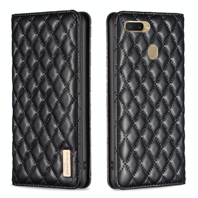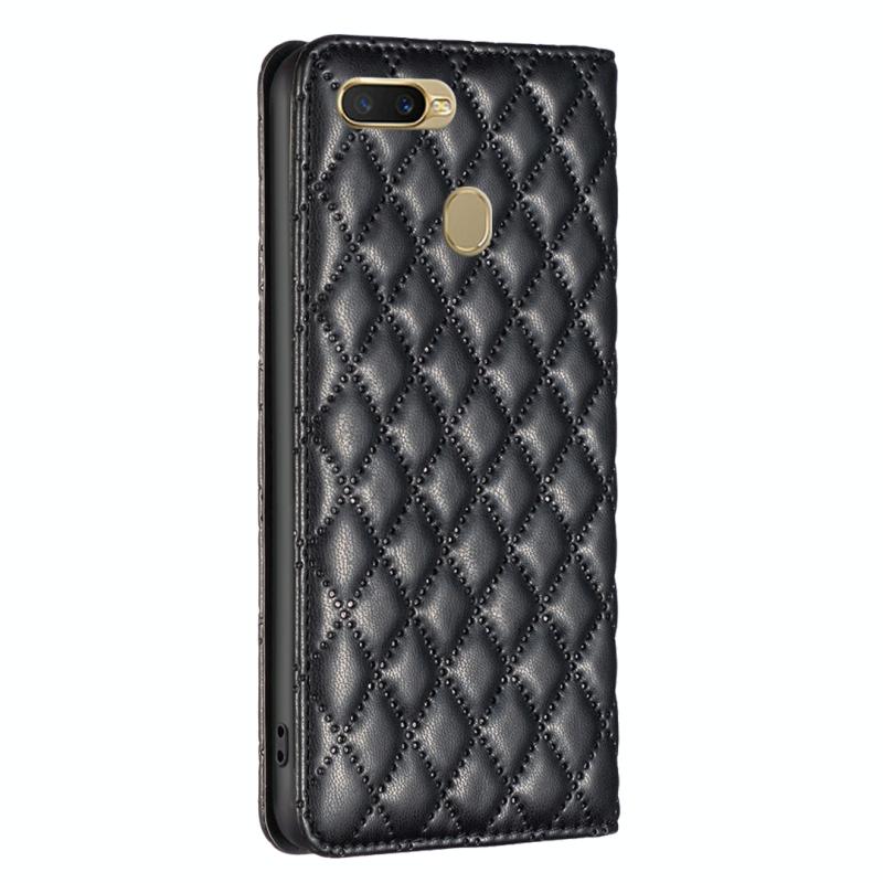 Θήκη τηλεφώνου OPPO A7 Diamond Lattice Magnetic Leather Flip (Μαύρο)