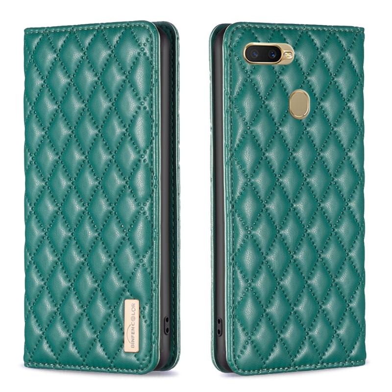 Θήκη τηλεφώνου OPPO A7 Diamond Lattice Magnetic Leather Flip (πράσινο)