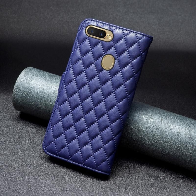 Για OPPO A7 Diamond Lattice πορτοφόλι δέρμα Flip υπόθεση τηλεφώνου (Μπλε)