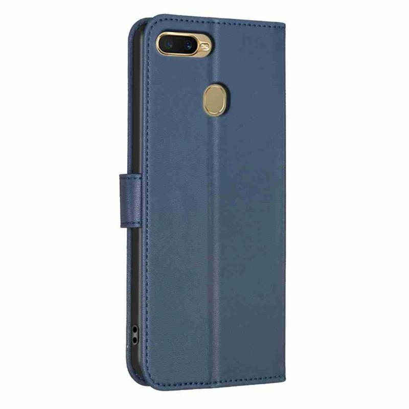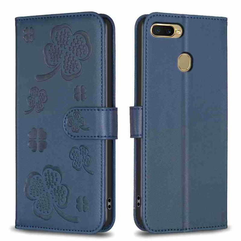 For OPPO A7 Four-leaf Embossed Leather Phone Case(Blue)