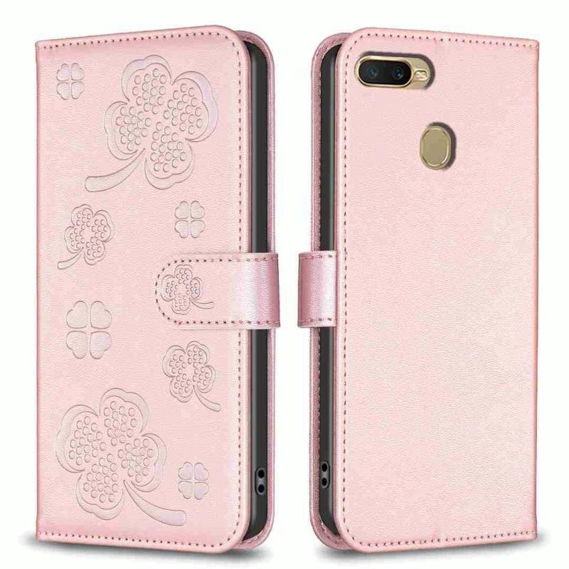 For OPPO A7 Four-leaf Embossed Leather Phone Case(Pink)