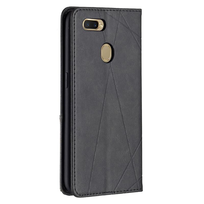 Για OPPO A7 Rhombus υφή οριζόντια Flip μαγνητική δερμάτινη θήκη με υποδοχή & υποδοχές καρτών (Μαύρο)