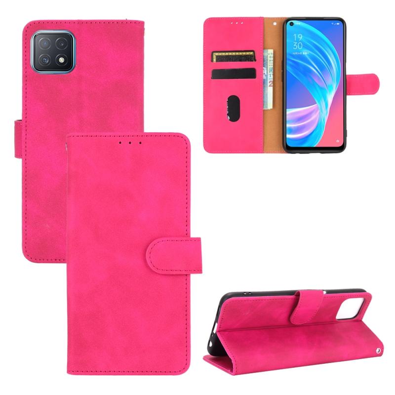 For OPPO A72 5G / A73 5G Solid Color Skin Feel Magnetic Buckle Horizontal Flip Calf Texture PU Leather Case with Holder & Card Slots & Wallet(Rose Red)