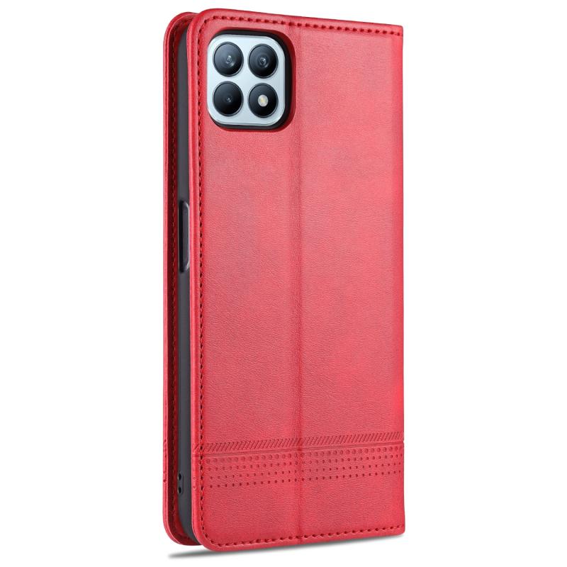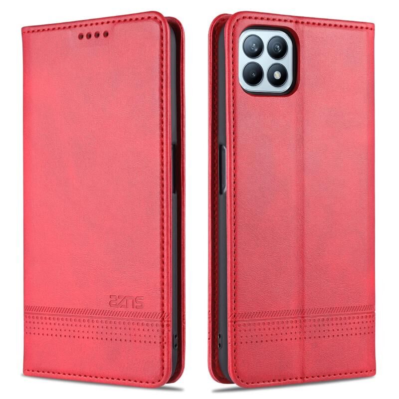 Θήκη δέρματος οριζόντιας αναδίπλωσης με μαγνητικό κλείσιμο και υφή μοσχαριού για OPPO A72 5G AZNS, με θήκες για κάρτες, στήριξη και λειτουργία πορτοφολιού (Κόκκινο) (Κόκκινο)