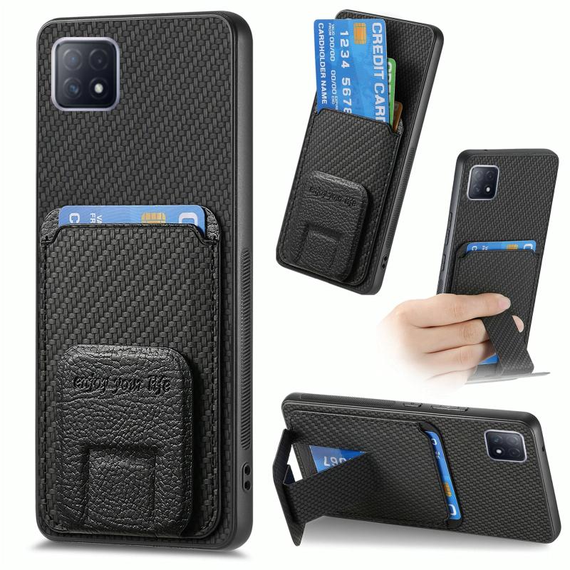 Θήκη για OPPO A72 5G από ανθρακονήματα με θήκη καρτών & βάση στήριξης (Μαύρο)