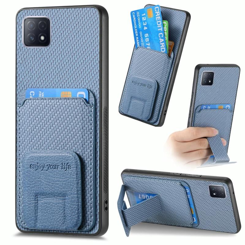 Θήκη για OPPO A72 5G από ανθρακονήματα με θήκη καρτών & βάση στήριξης (Μπλε)