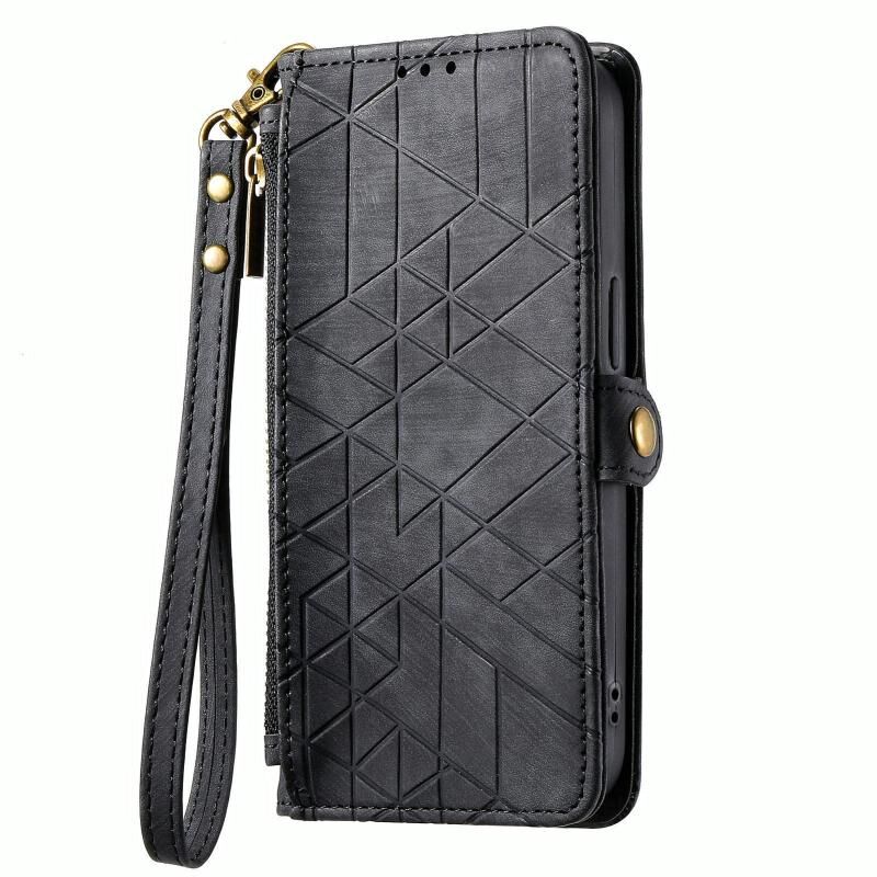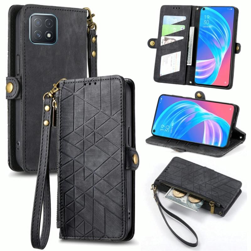 Για OPPO A72 5G γεωμετρική φερμουάρ πορτοφόλι πλευρά πόρπη δερμάτινη θήκη τηλεφώνου (Μαύρο)