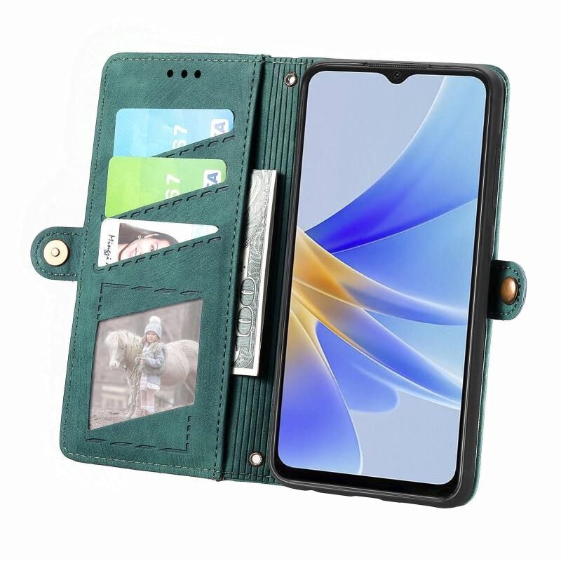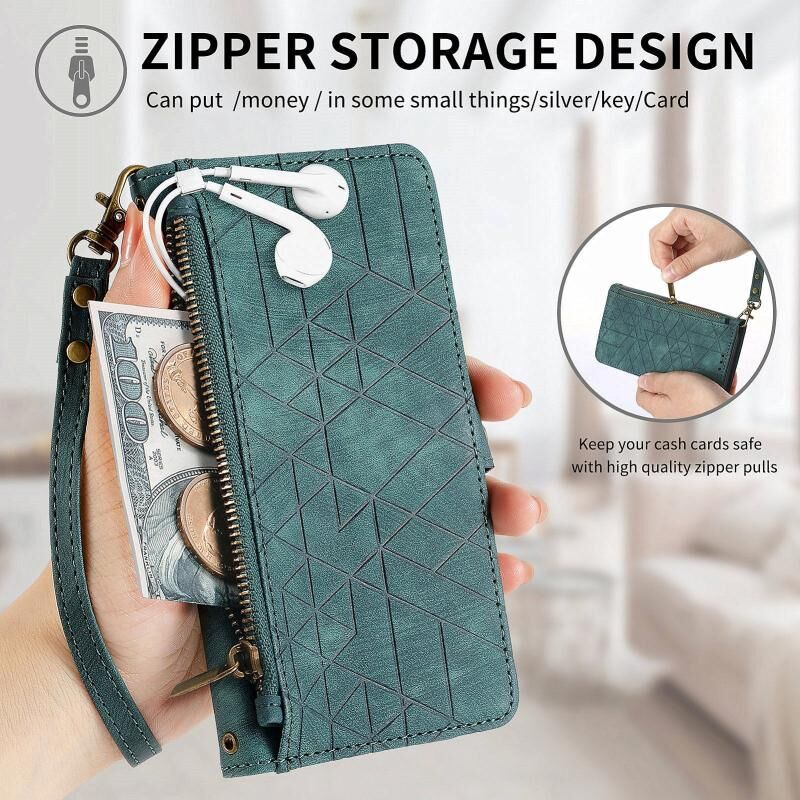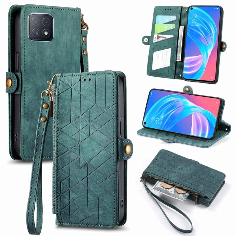 Για OPPO A72 5G γεωμετρική φερμουάρ πορτοφόλι πλευρά πόρπη δερμάτινη θήκη τηλεφώνου (πράσινο)