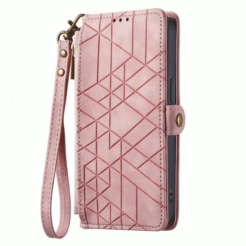 Για OPPO A72 5G γεωμετρική φερμουάρ πορτοφόλι πλευρά πόρπη δερμάτινη θήκη τηλεφώνου (ρόζ)