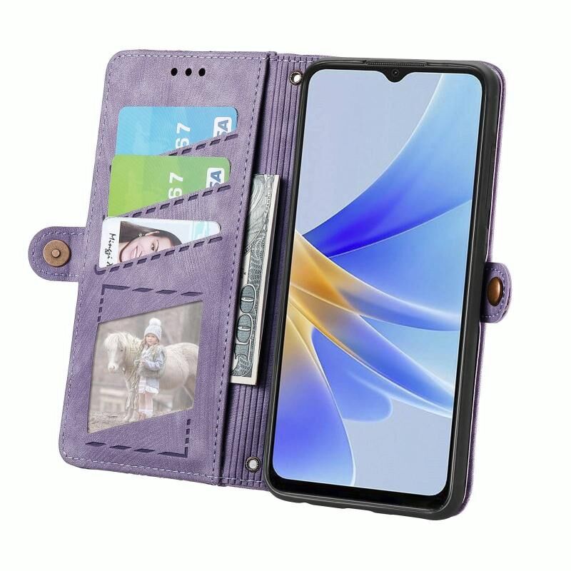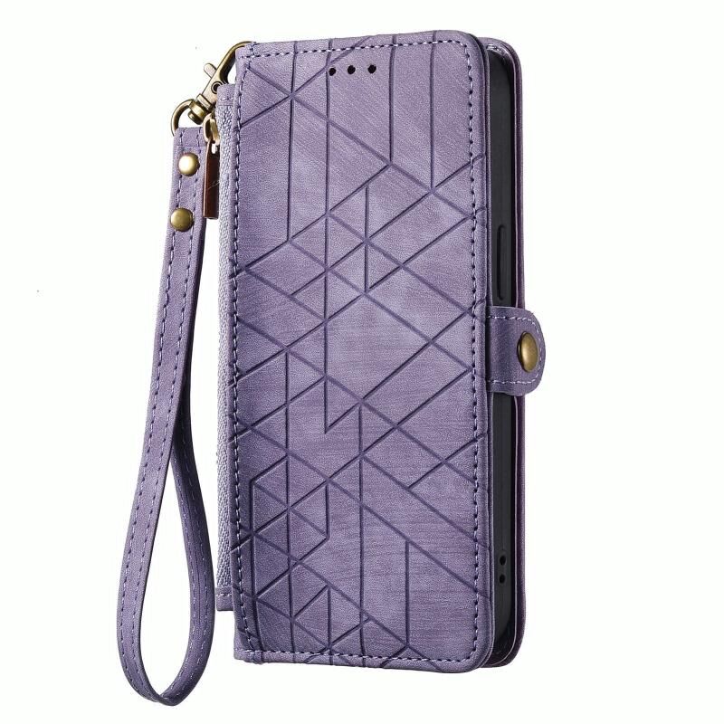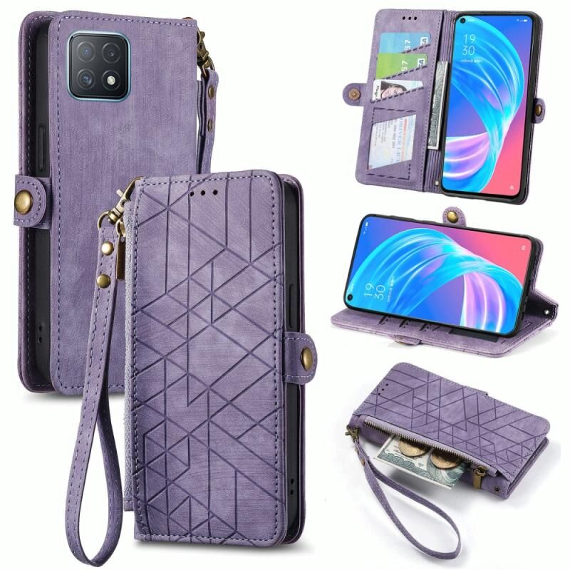 Για OPPO A72 5G γεωμετρική φερμουάρ πορτοφόλι πλευρά πόρπη δερμάτινη θήκη τηλεφώνου (Μωβ)