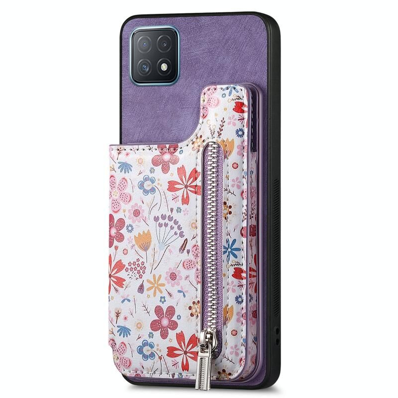 Για OPPO A72 5G Ρετρό ζωγραφισμένο φερμουάρ πορτοφόλι πίσω τηλέφωνο υπόθεση (μωβ)