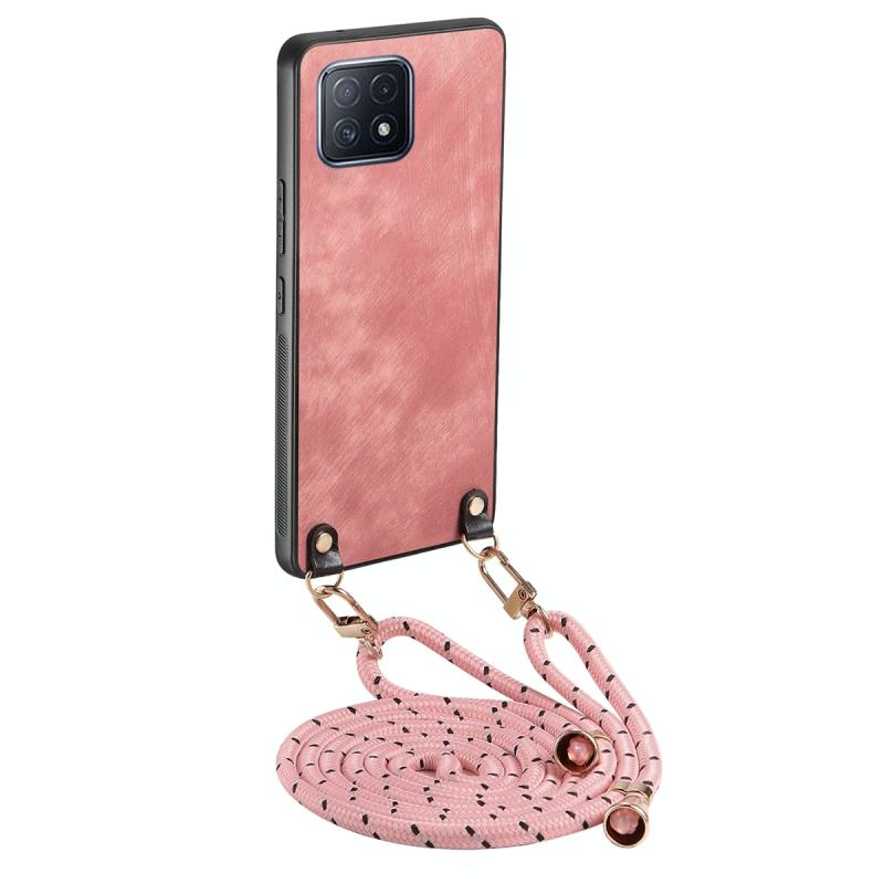 Θήκη κινητού τηλεφώνου OPPO A72 5G με δερμάτινη πλάτη PC σε vintage στυλ με λουρί χιαστί (ρόζ)