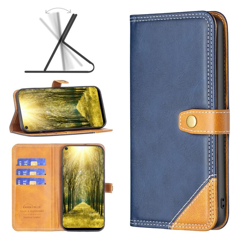 Θήκη τηλεφώνου από δέρμα με διπλή ραφή και αντιστοίχιση χρωμάτων για OPPO A72 / A52 / A92 (Μπλε)