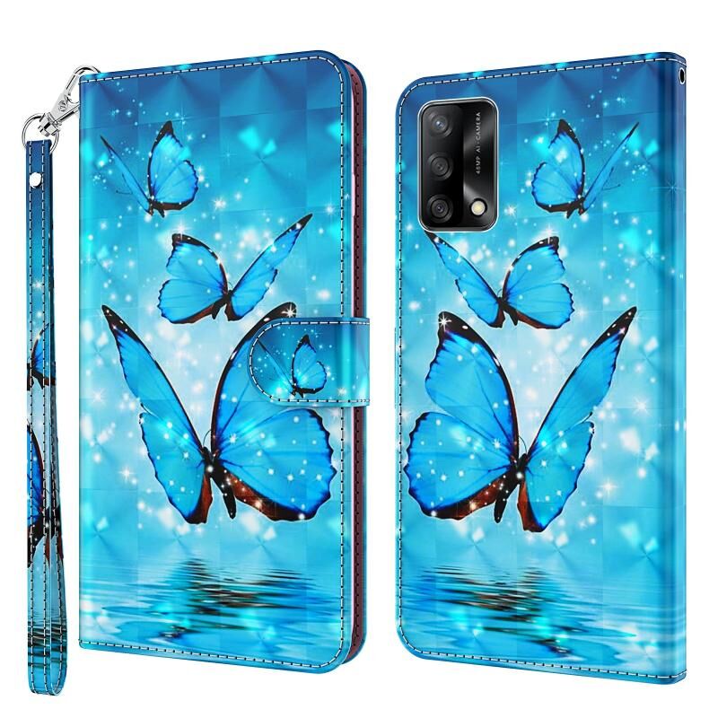 Θήκη τηλεφώνου από δέρμα με σχέδιο 3D ζωγραφικής για OPPO A74 4G (Τρεις Πεταλούδες)