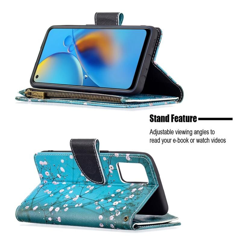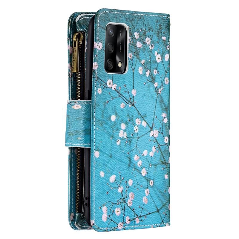 Θήκη δέρματος οριζόντιας αναδίπλωσης με φερμουάρ και σχέδια για OPPO A74 4G/F19 4G, με βάση, θήκες καρτών και πορτοφόλι (Κόκκινο)