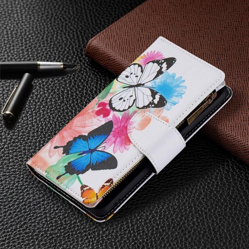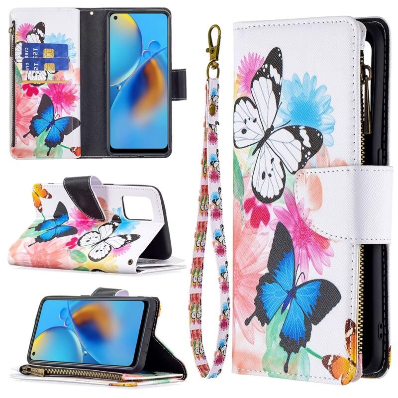 Θήκη δέρματος οριζόντιας αναδίπλωσης με φερμουάρ και σχέδιο ζωγραφικής για OPPO A74 4G/F19 4G με βάση για κάρτες και πορτοφόλι (Δύο Πεταλούδες)
