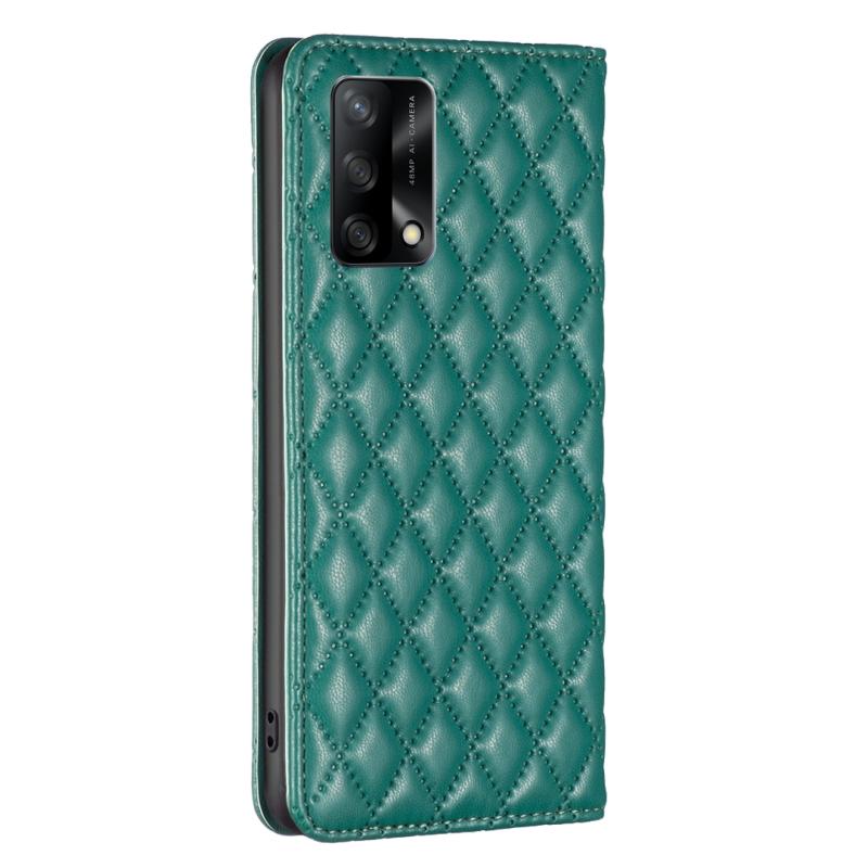 Θήκη τηλεφώνου με μαγνητικό δέρμα τύπου flip με διαμαντένιο πλέγμα για OPPO A74 4G / F19 4G (πράσινο)