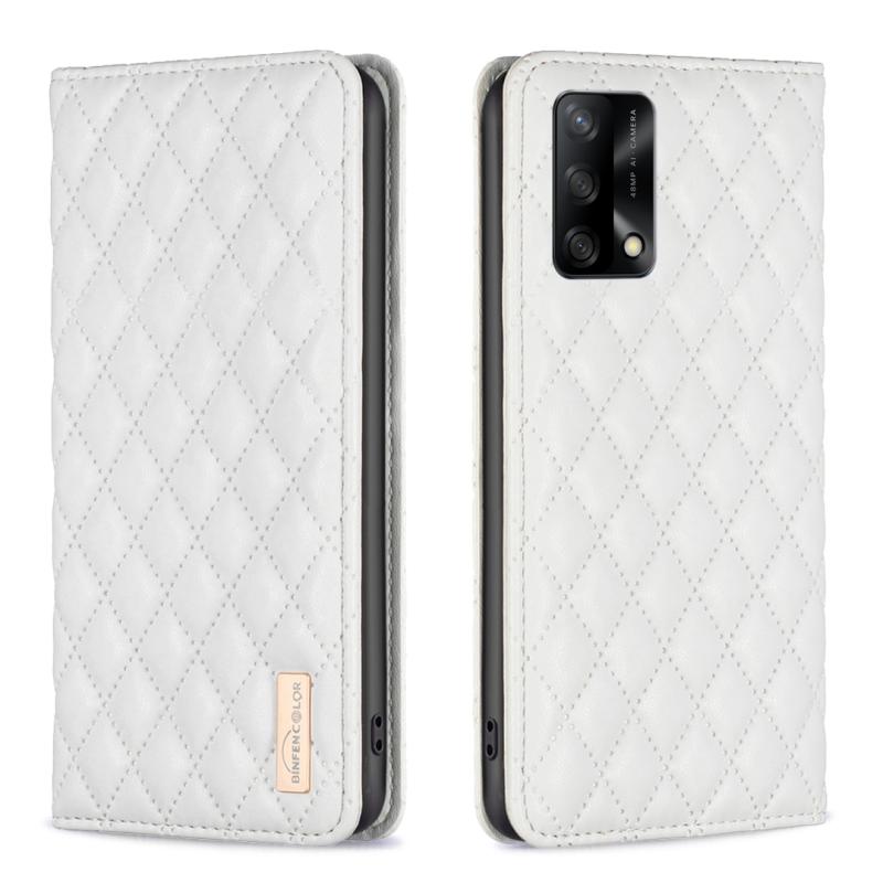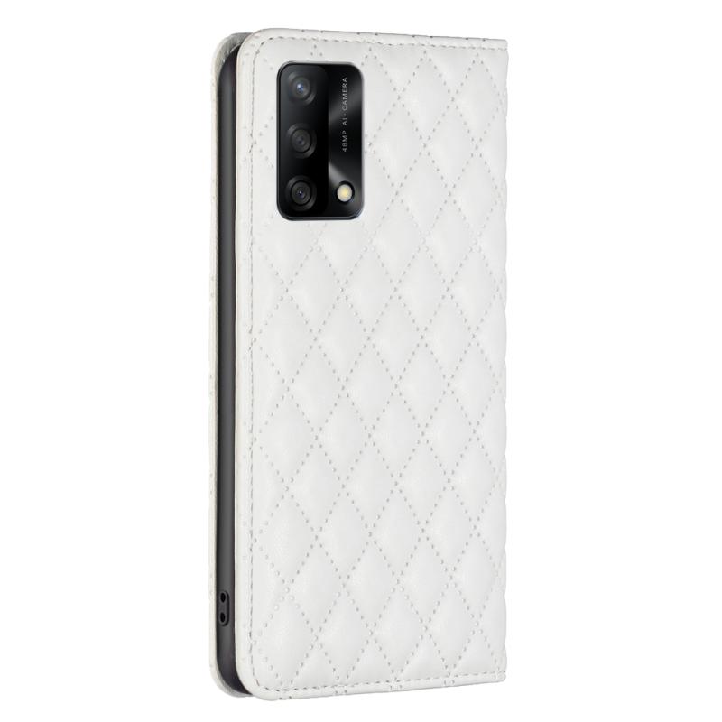 Θήκη τηλεφώνου με μαγνητικό δέρμα τύπου flip με διαμαντένιο πλέγμα για OPPO A74 4G / F19 4G (Λευκό)