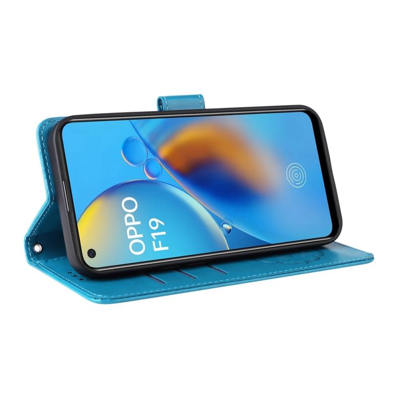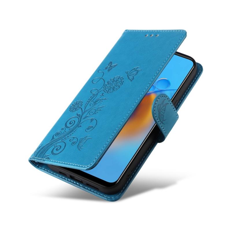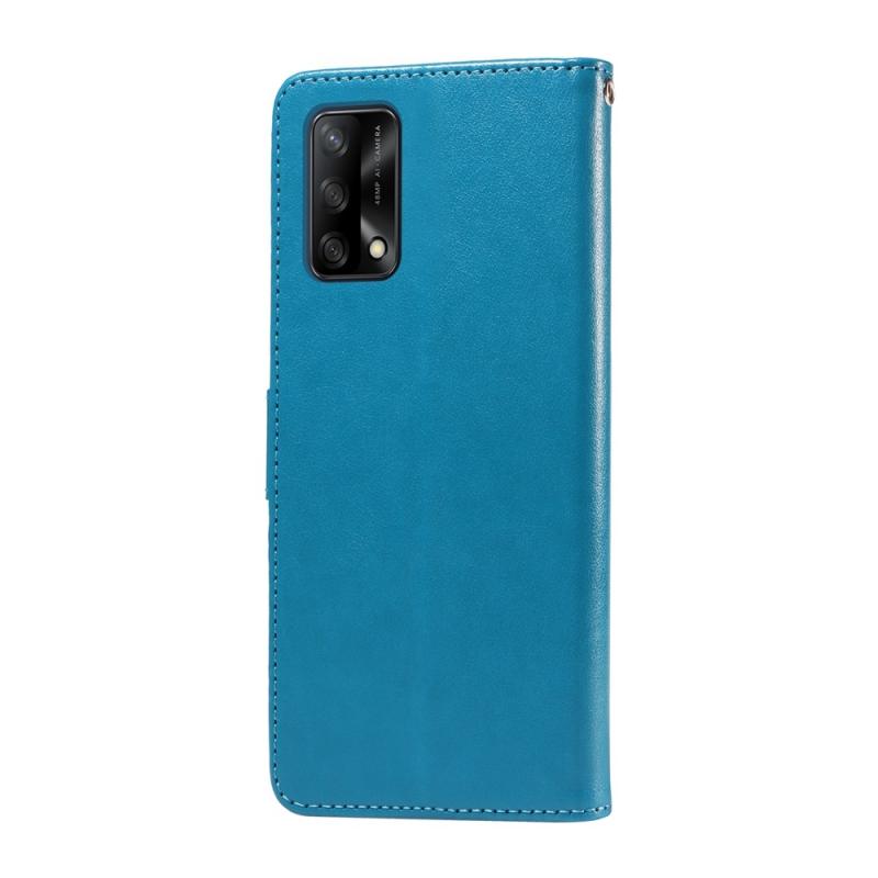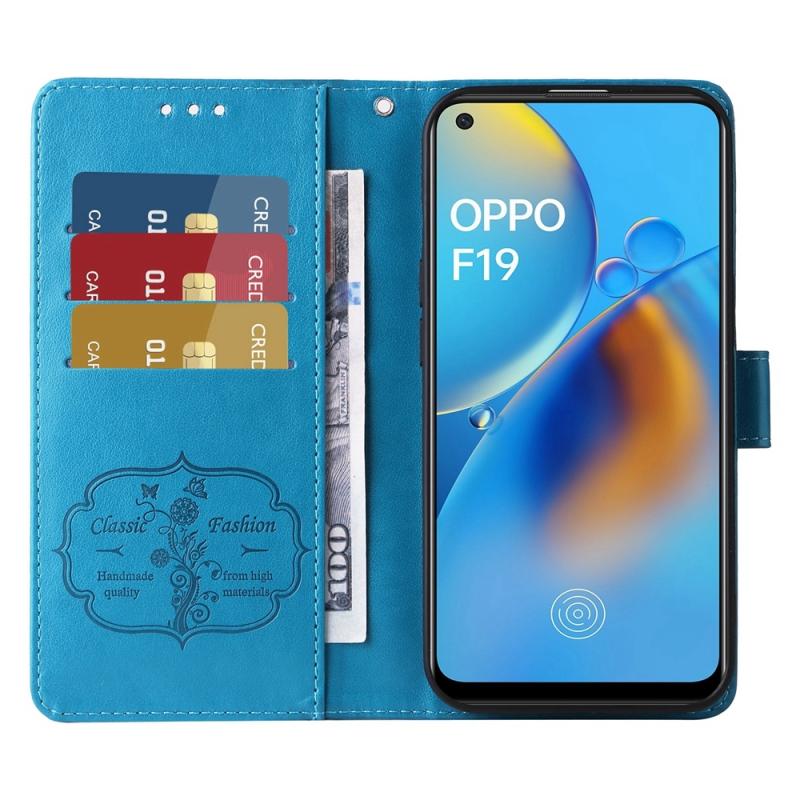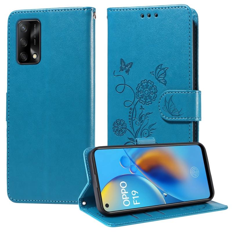 For OPPO A74 4G / F19 4G / F19s / A95 4G Embossed Butterfly Flowers Leather Phone Case(Blue)