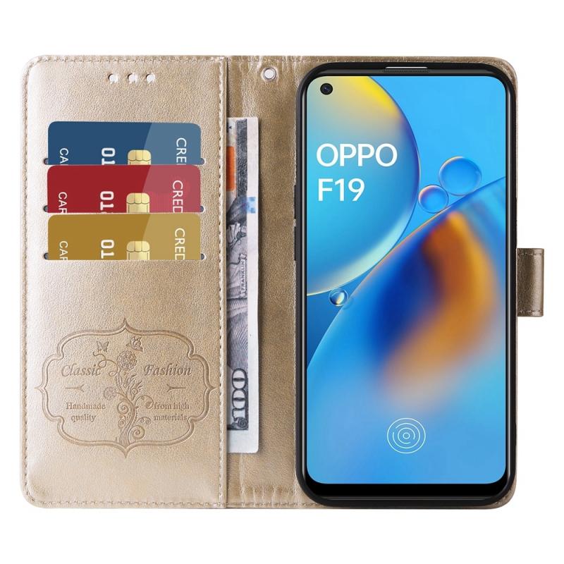 For OPPO A74 4G / F19 4G / F19s / A95 4G Embossed Butterfly Flowers Leather Phone Case(Gold)
