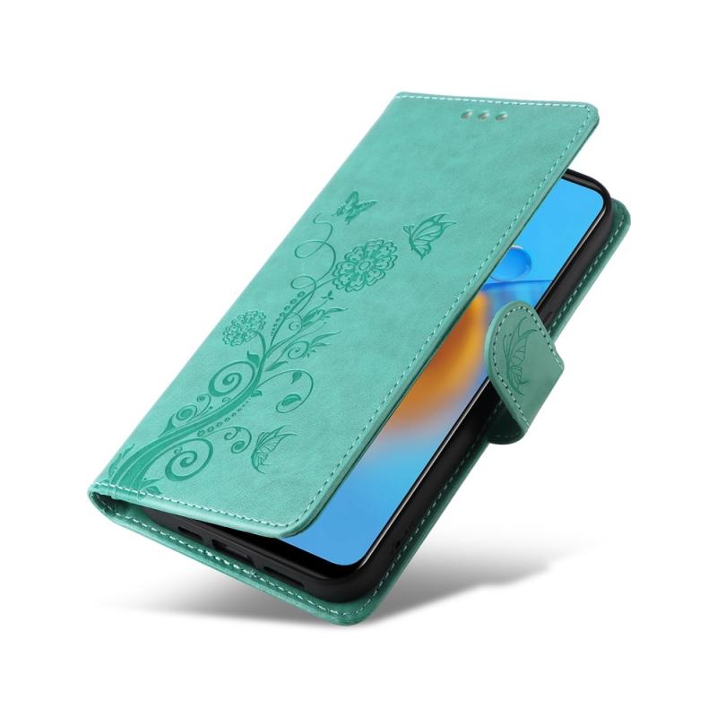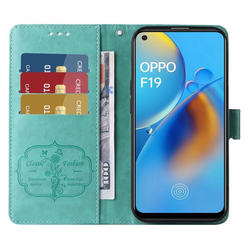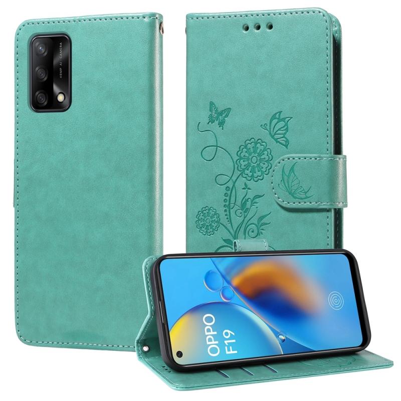For OPPO A74 4G / F19 4G / F19s / A95 4G Embossed Butterfly Flowers Leather Phone Case(Green)