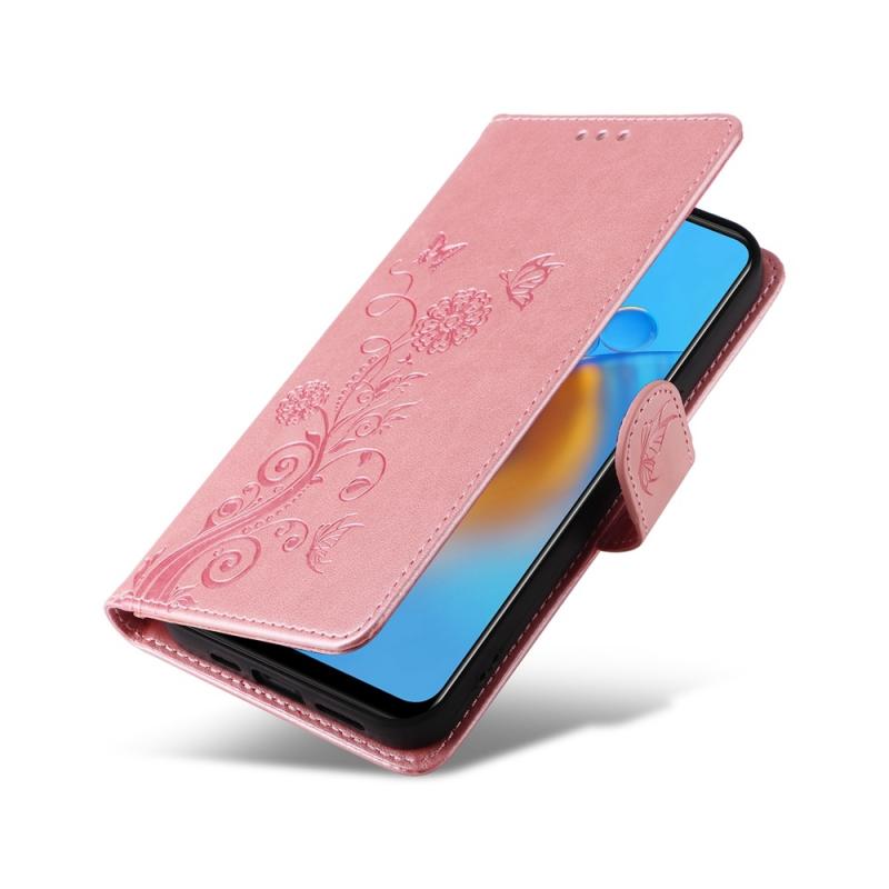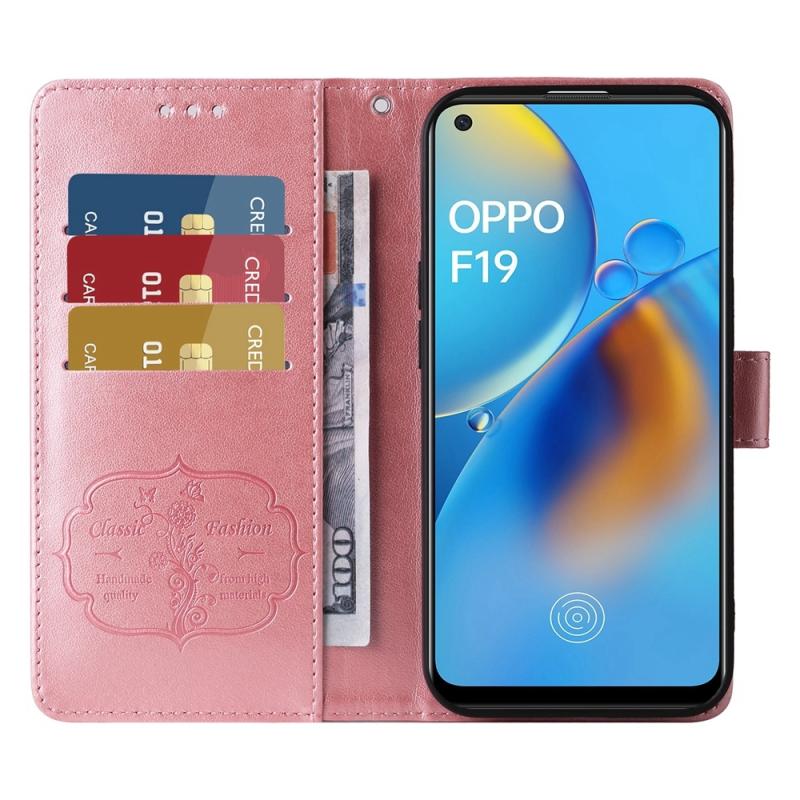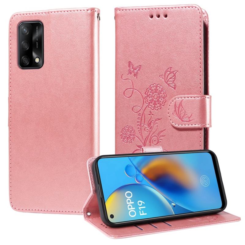 For OPPO A74 4G / F19 4G / F19s / A95 4G Embossed Butterfly Flowers Leather Phone Case(Rose Gold)
