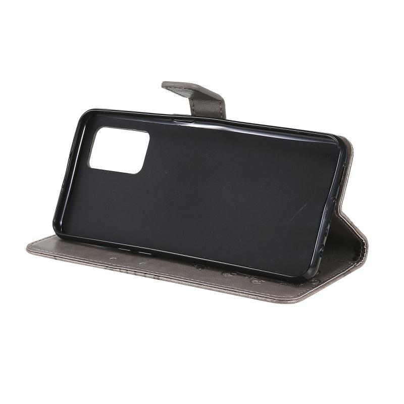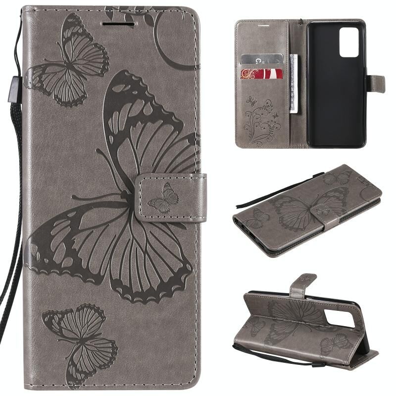 Για OPPO A74 4G / F19 4G Πιεσμένη εκτύπωση πεταλούδα μοτίβο οριζόντια Flip PU δέρμα υπόθεση με κάτοχο & υποδοχές καρτών & πορτοφόλι & Lanyard (Γκρι)