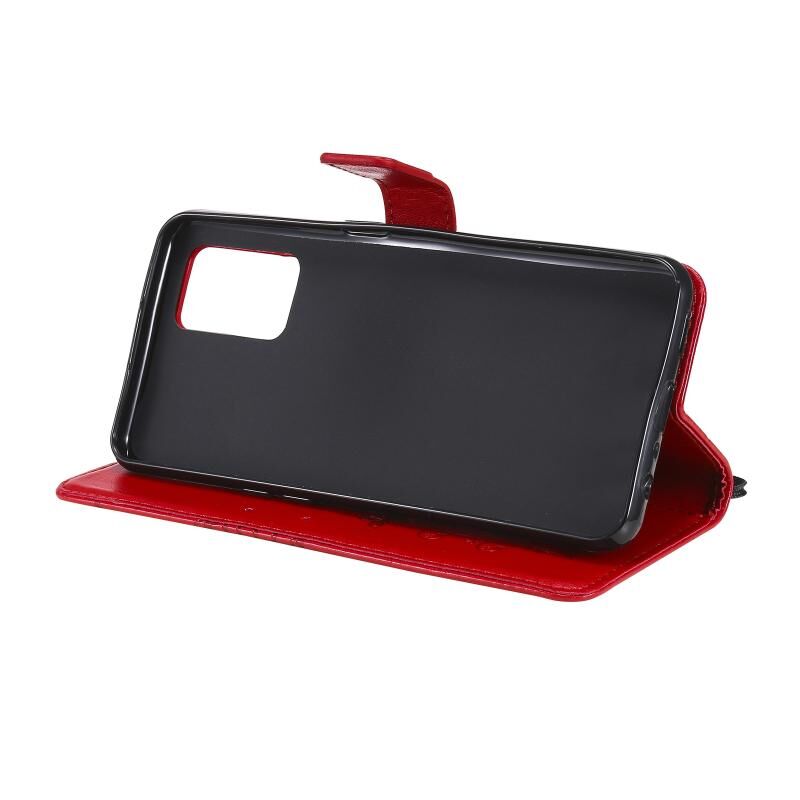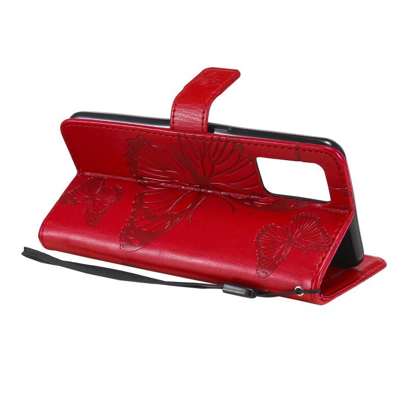 Για OPPO A74 4G / F19 4G Πιεσμένη εκτύπωση πεταλούδα μοτίβο οριζόντια Flip PU δέρμα υπόθεση με κάτοχο & υποδοχές καρτών & πορτοφόλι & Lanyard (κόκκινο)