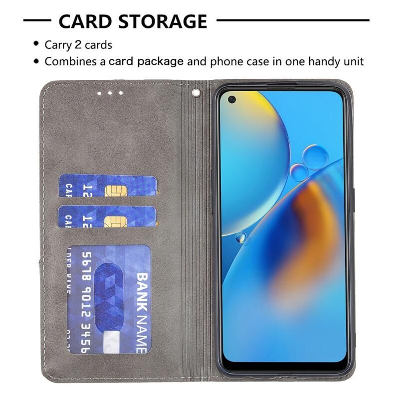Για OPPO A74 4G / F19 4G Rhombus Υφή Οριζόντια Flip μαγνητική δερμάτινη θήκη με θήκη & υποδοχές καρτών (γκρι)