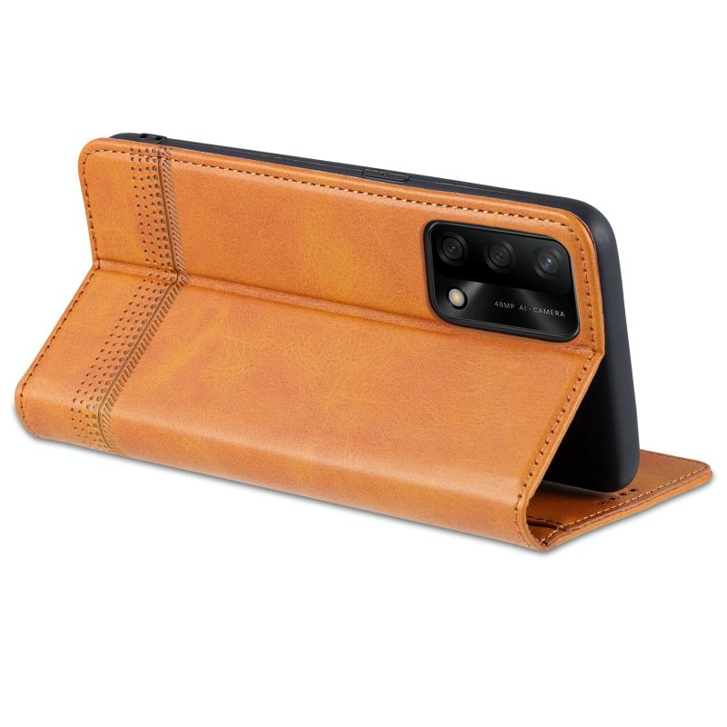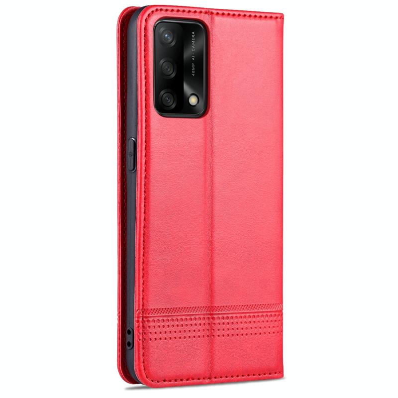Για OPPO A74 4G / F19 AZNS Μαγνητική Θήκη Δέρματος Οριζόντιας Αναδίπλωσης με Υφή Μοσχαριού με Θήκες Καρτών & Στήριξη & Πορτοφόλι (Πράσινο) (Κόκκινο)