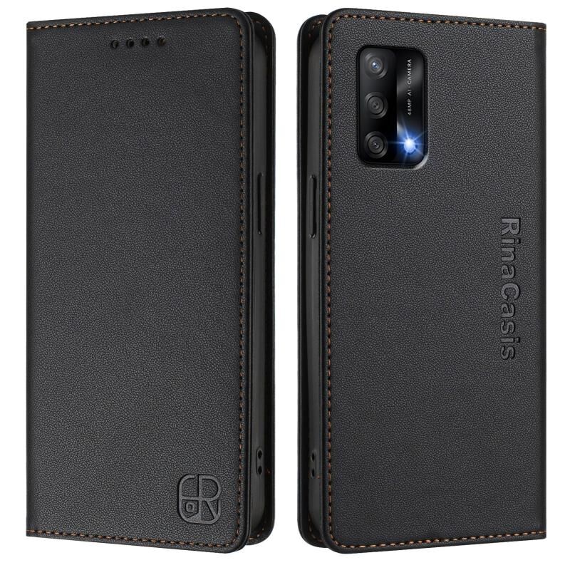 Θήκη τηλεφώνου από δέρμα με μαγνητική απορρόφηση και διπλή πτυχή για OPPO A74 4G / F19 / F19s / A95 5G / 4G RC01 (Μαύρο)
