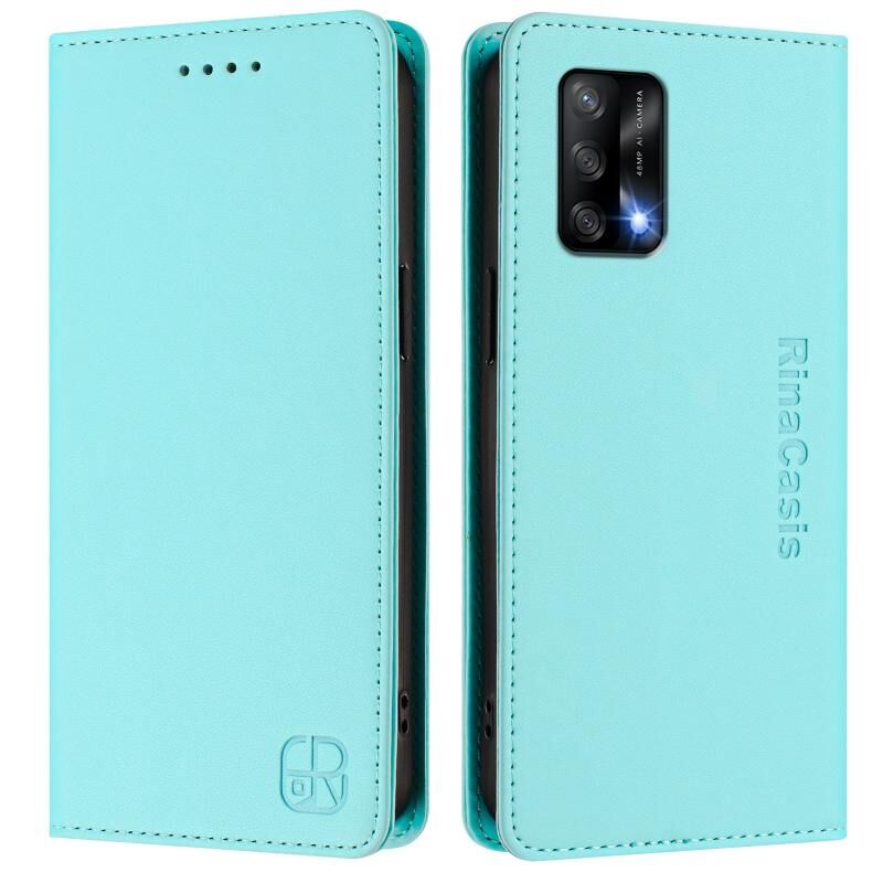 Θήκη τηλεφώνου από δέρμα με μαγνητική απορρόφηση και διπλή πτυχή για OPPO A74 4G / F19 / F19s / A95 5G / 4G RC01 (Μέντας πράσινο)