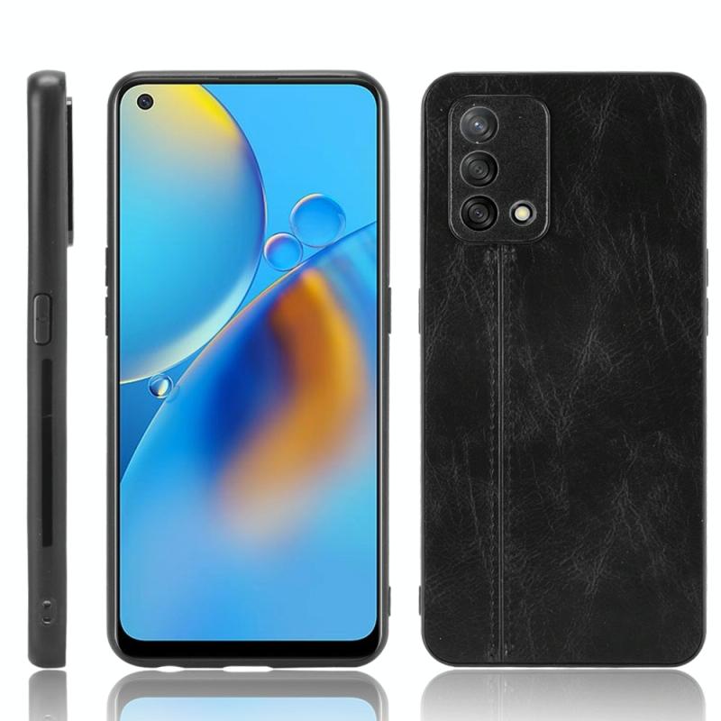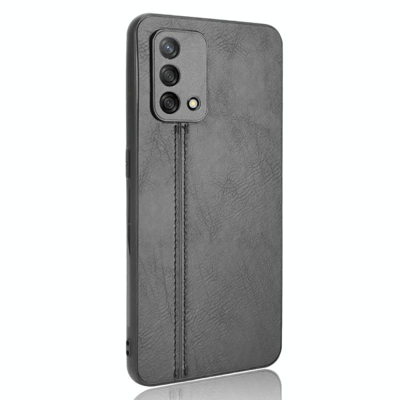 Θήκη για OPPO A74 4G / F19 ανθεκτική στις κρούσεις, με ραφτό σχέδιο αγελάδας, από PC + PU + TPU (Μαύρο)
