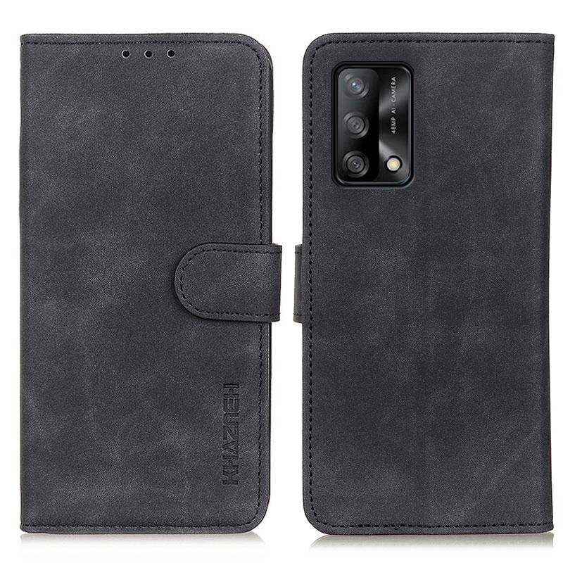Για OPPO A74 4G KHAZNEH Ρετρό Υφή Οριζόντια Δερμάτινη Θήκη με Στήριξη & Θήκες Καρτών & Πορτοφόλι (Μαύρο)