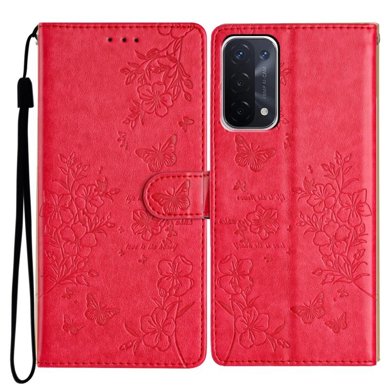 For OPPO A74 5G / A54 5G Butterflies and Flowers Leather Phone Case(Red)