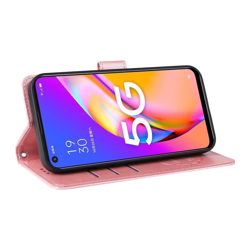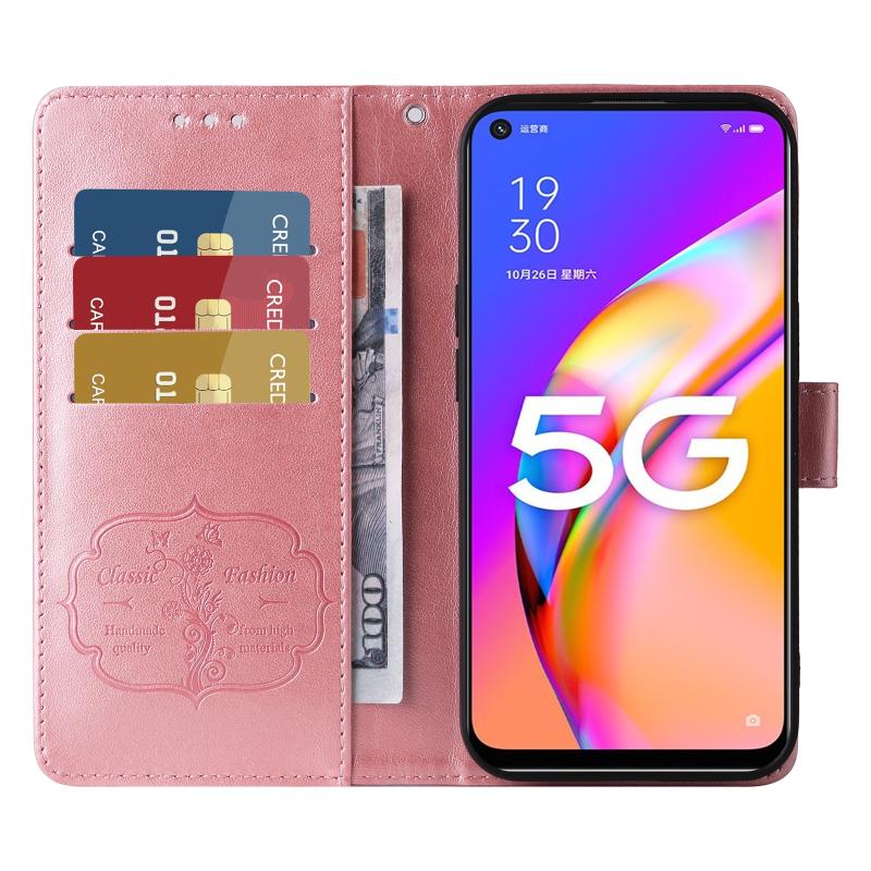 For OPPO A74 5G / A54 5G Embossed Butterfly Flowers Leather Phone Case(Rose Gold)