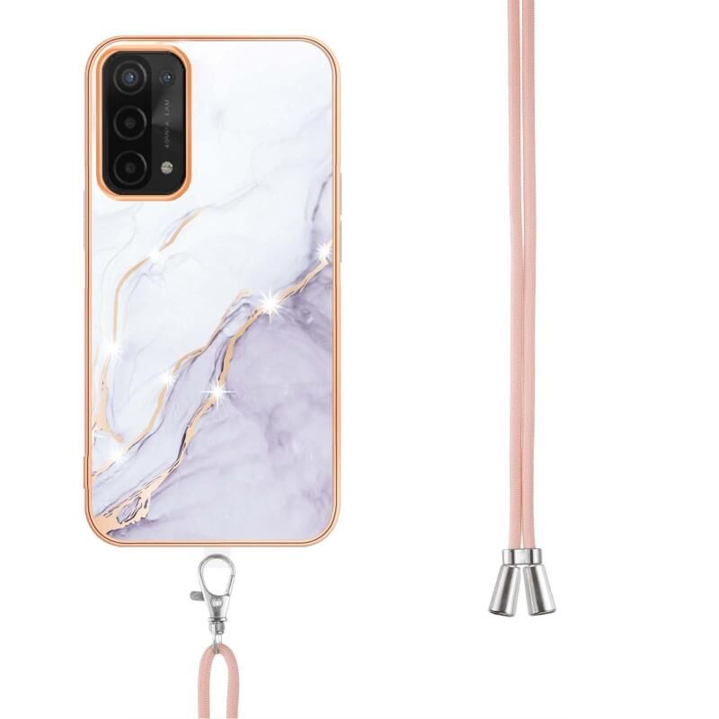 Θήκη κινητού τηλεφώνου OPPO A74 5G / A93 5G / A54 5G / A93s 5G με επιμετάλλωση, σχέδιο μάρμαρου IMD, από TPU με κορδόνι (Μωβ 001)
