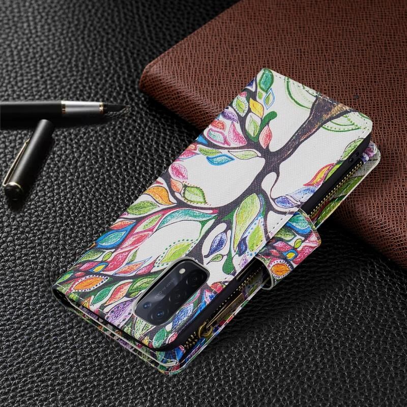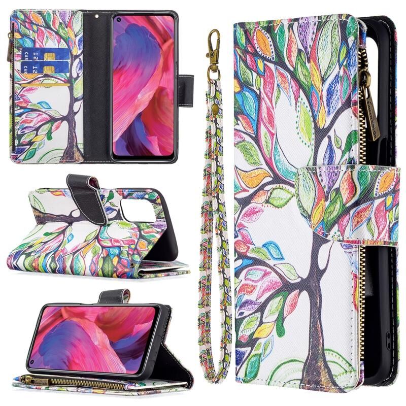 Για OPPO A74 5G/A93 5G/A54 5G Θήκη Δέρματος Οριζόντιας Αναδίπλωσης με Φερμουάρ, με Σχέδια Ζωγραφικής, Θήκη & Θήκες Καρτών & Πορτοφόλι (Μεγάλο Δέντρο)