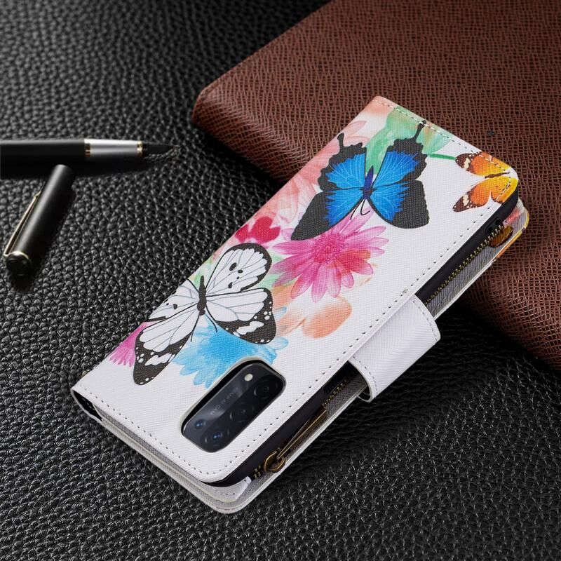 Για OPPO A74 5G/A93 5G/A54 5G Θήκη Δέρματος Οριζόντιας Αναδίπλωσης με Φερμουάρ, Πολύχρωμο Σχέδιο Ζωγραφικής με Θήκη & Θήκες Καρτών & Πορτοφόλι (Δύο Πεταλούδες)