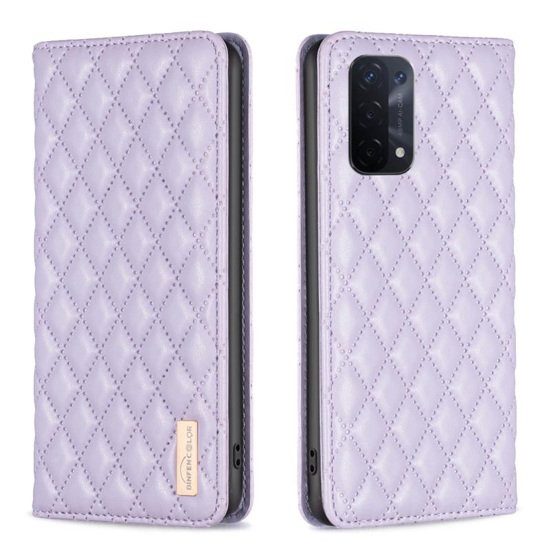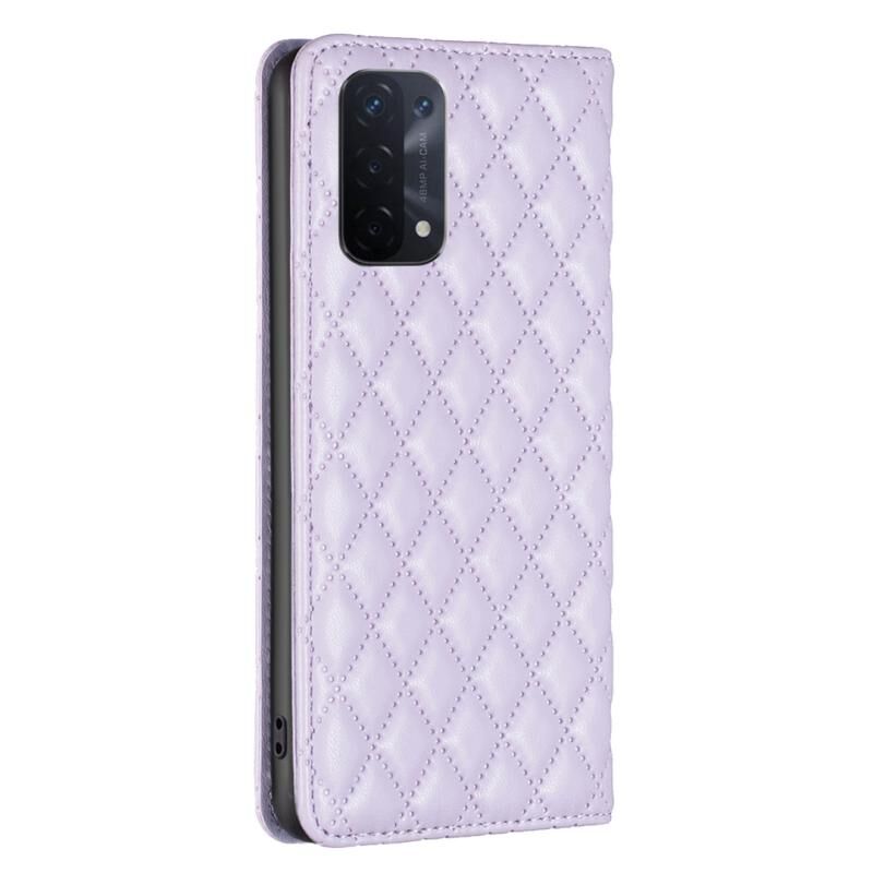 Θήκη τηλεφώνου με μαγνητικό δέρμα και σχέδιο διαμαντένιου πλέγματος για OPPO A74 5G / A93 5G / A54 5G (Μωβ)