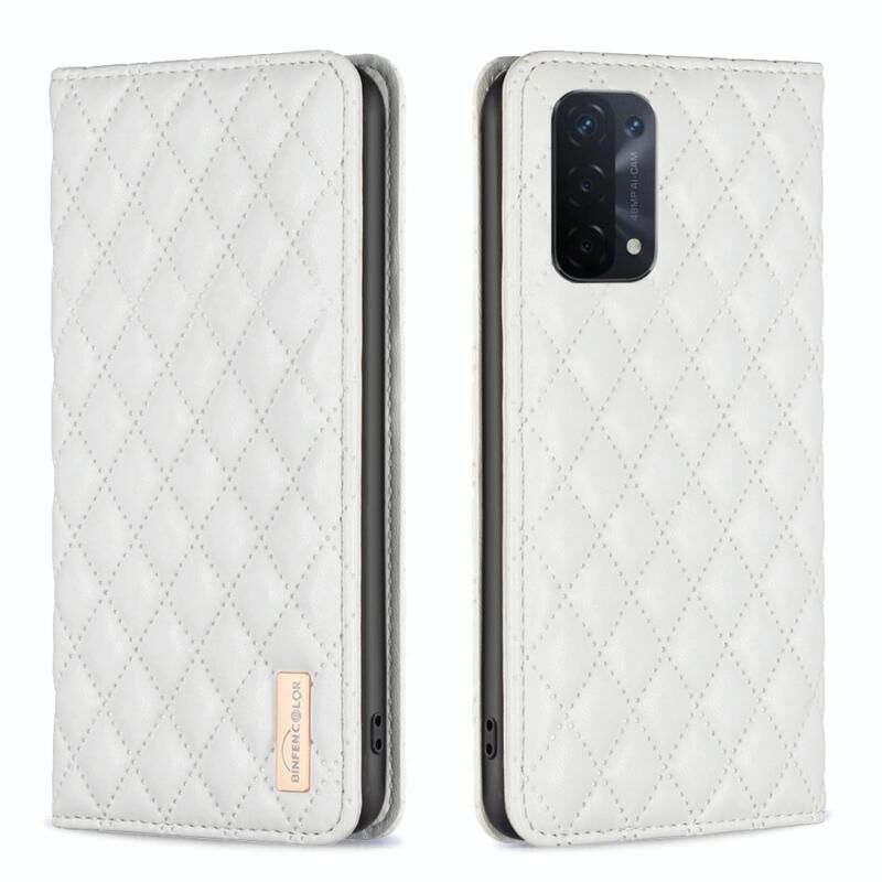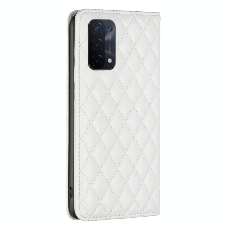 Θήκη τηλεφώνου με μαγνητικό δέρμα και σχέδιο διαμαντένιου πλέγματος για OPPO A74 5G / A93 5G / A54 5G (Λευκό)