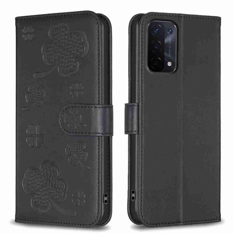 For OPPO A74 5G / A93 5G / A54 5G Four-leaf Embossed Leather Phone Case(Black)