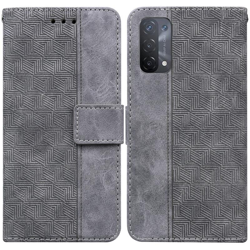 Για OPPO A74 5G / A93 5G / A54 5G Γεωμετρική ανάγλυφη δερμάτινη θήκη τηλεφώνου (γκρι)