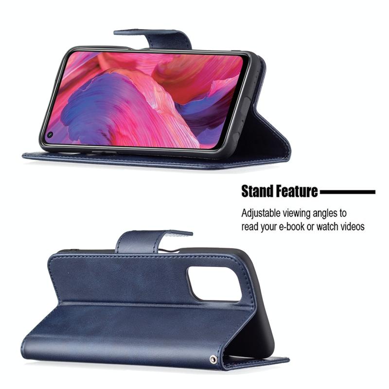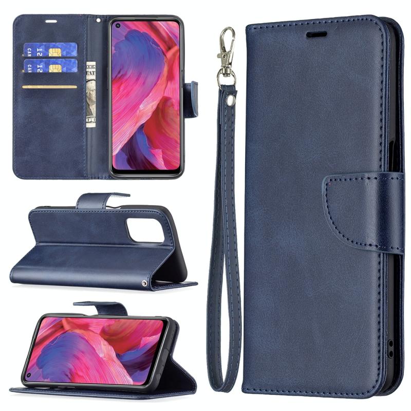 For OPPO A74 5G/A93 5G/A54 5G Retro Lambskin Texture Pure Color Horizontal Flip PU Leather Case with Holder & Card Slots & Wallet & Lanyard(Blue)