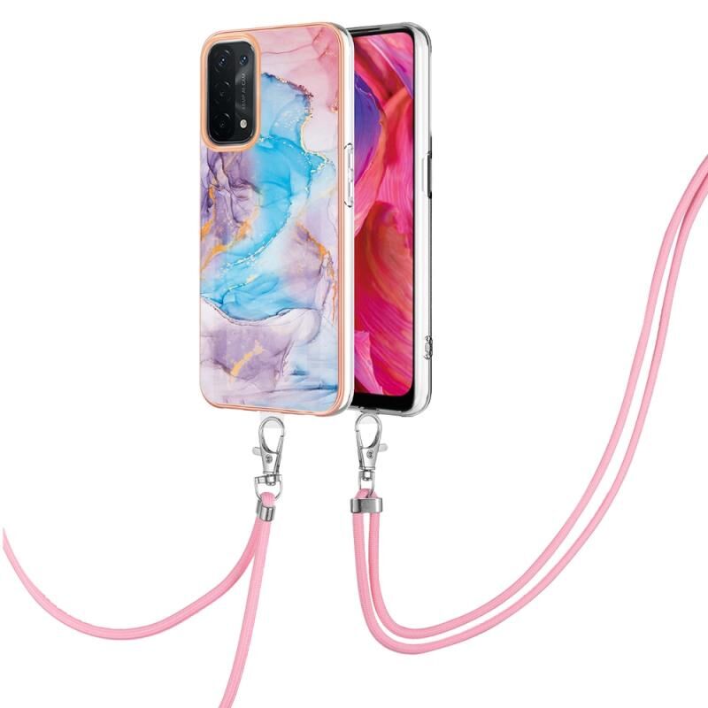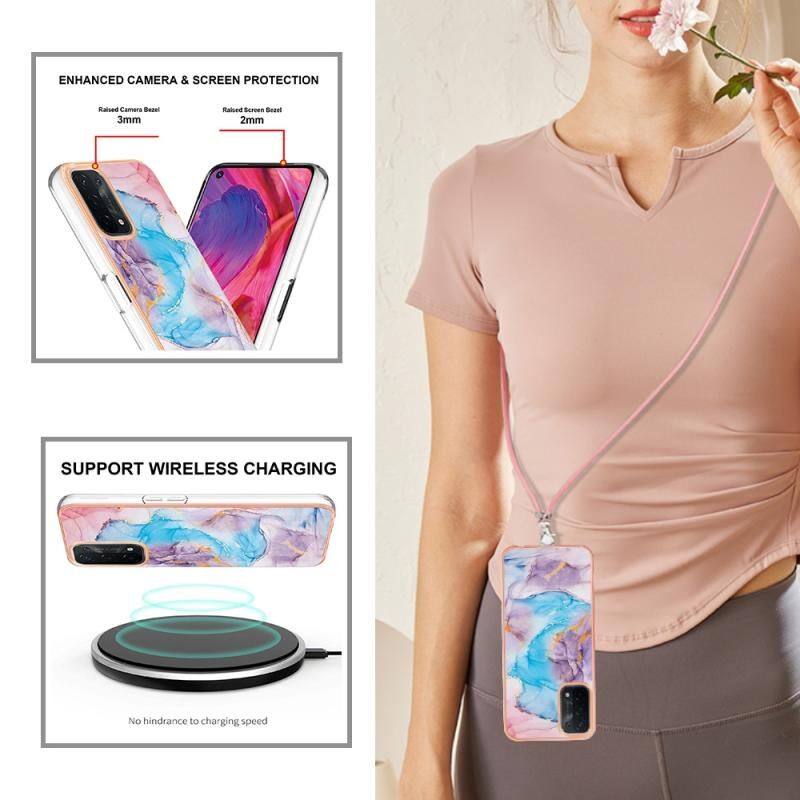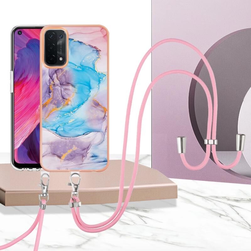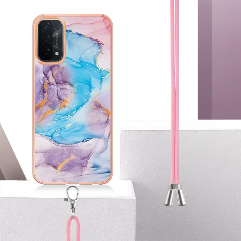 Θήκη τηλεφώνου για OPPO A74 5G / A93 5G με επιμετάλλωση IMD TPU με κορδόνι (Ροζ Λέπια)