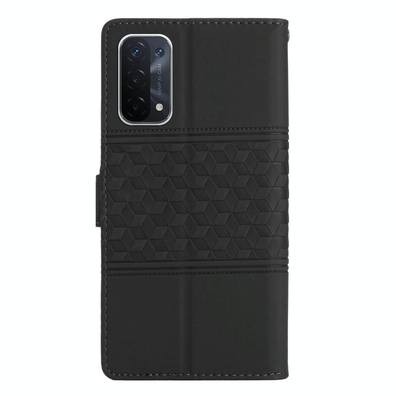 Για OPPO A74 / A54 / A93 Diamond ανάγλυφο δέρμα αίσθηση δέρμα τηλέφωνο υπόθεση με κορδόνι (μαύρο)